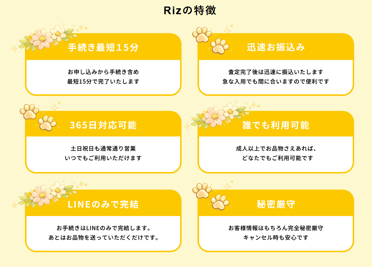 「Riz(リズ)」の先払い買取は以下の特徴があります。